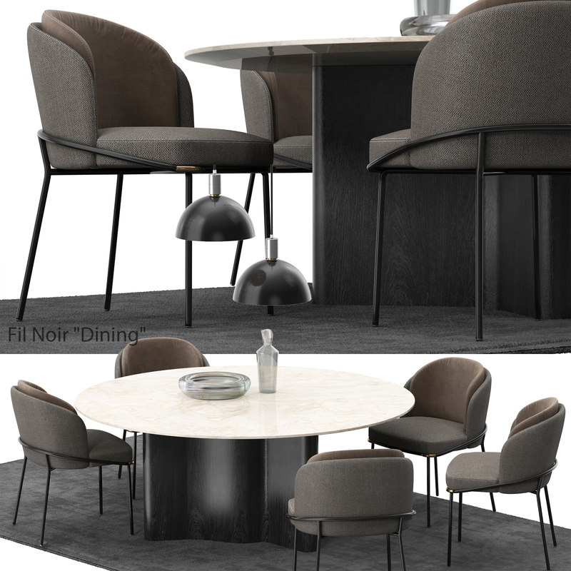 Dining set fil noir produced by design connected. A little armchair that beautifully blends formal elegance and great comfort, thanks to its metal and polyurethane foam structure. Today, minotti has a presence in almost 70 countries, and the company's offerings — which span collections for indoor and outdoor residential and hospitality spaces — include everything from nightstands to dining tables to sideboards, armchairs and more. Minotti fil noir dining chair computer generated 3d model.