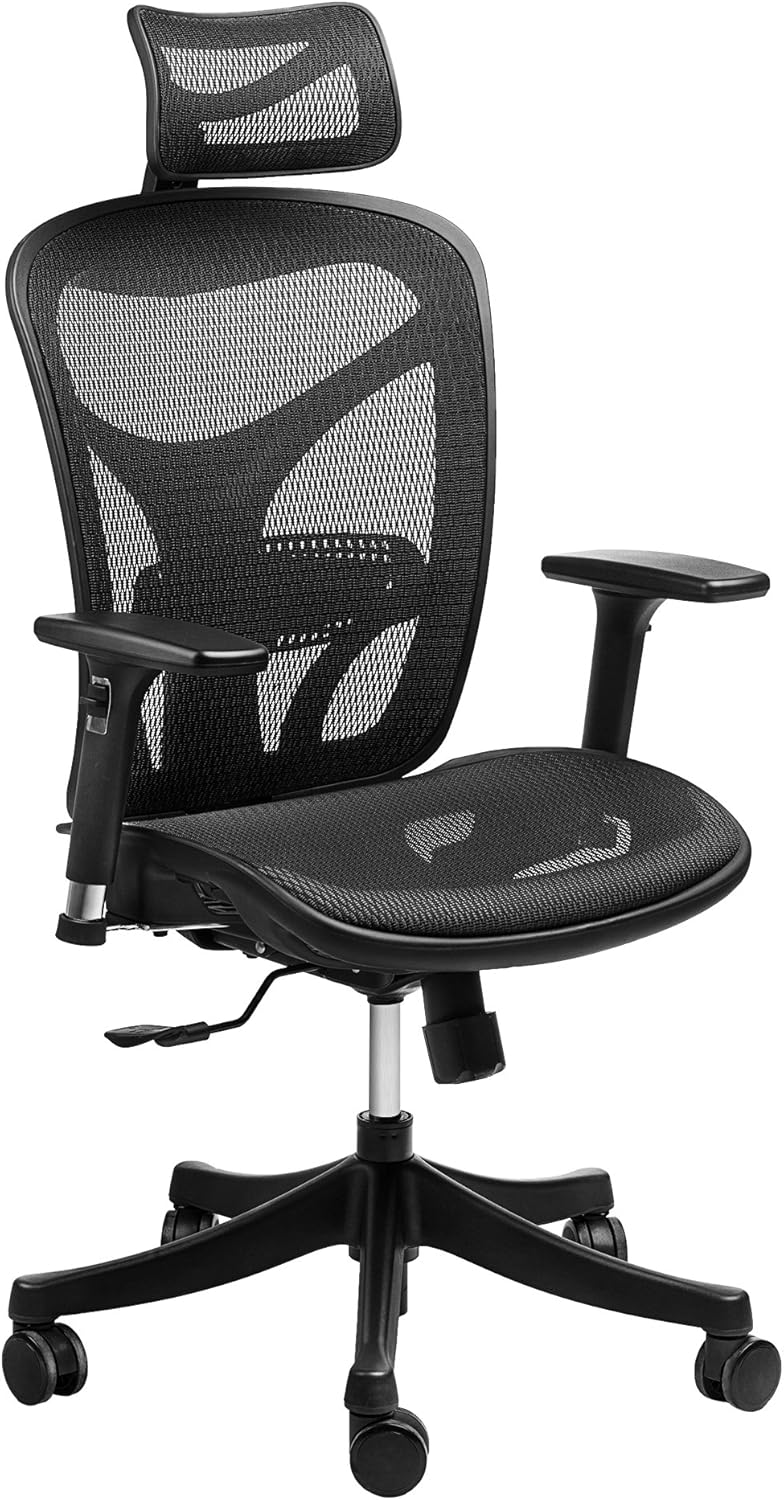 The chair's mesh headrest can be raised and lowered as needed, and can even rotate up or down to provide additional neck support.